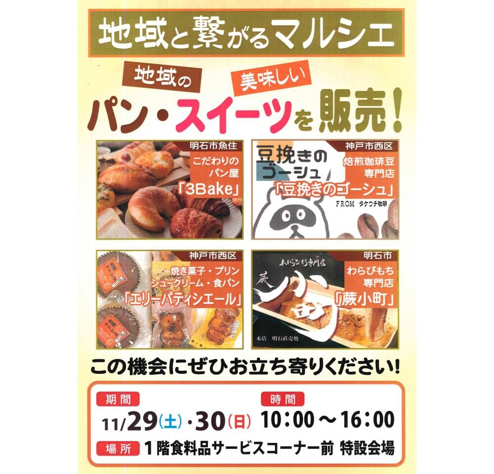 100周年記念セール期間中は、税込600円購入ごとに300円の金券がもらえるそう。また美味しいパンをお得に食べることができます。いつも元気に営業されている、明石の町にあるダンマルシェさん。これからもおいしいパンよろしくお願いします!