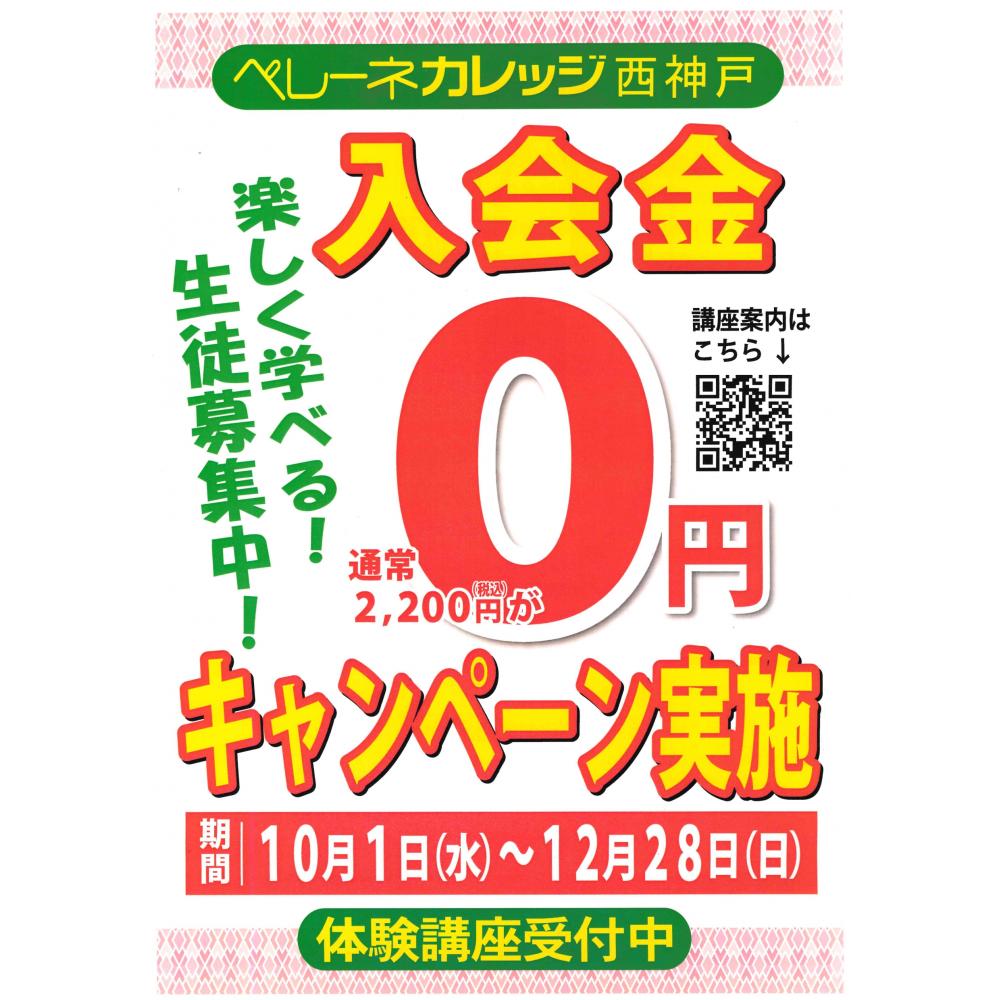 ペレーネカレッジ西神戸の入会金0円キャンペーンのお知らせ!✨