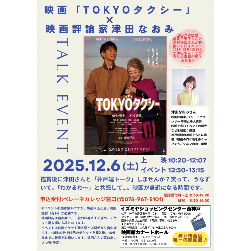 映画「TOKYOタクシー」観賞後、津田なおみさんと「井戸端トーク」しませんか?