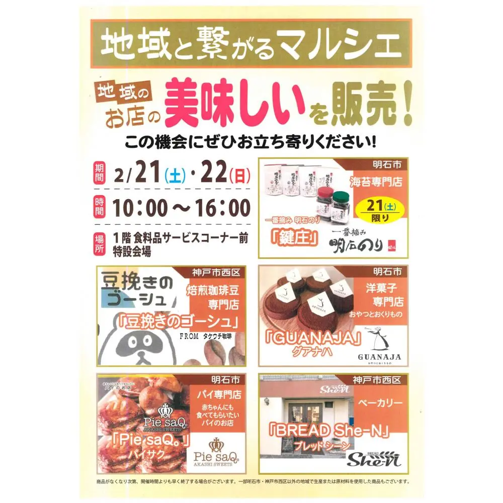 地域の美味しいパン・スイーツ・珈琲・明石のりを限定販売しています。