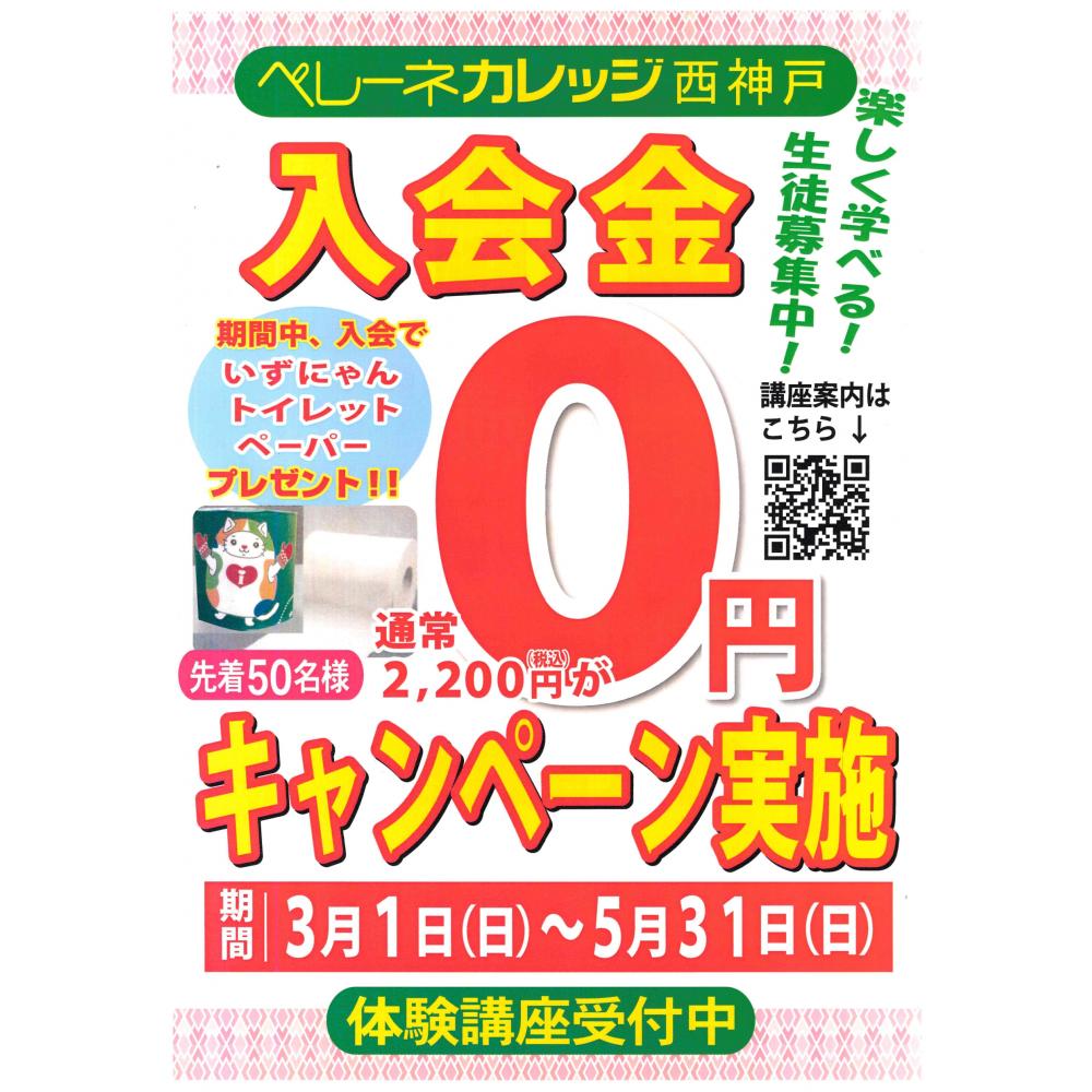 ペレーネカレッジ西神戸入会金0円キャンペーンのお知らせ!