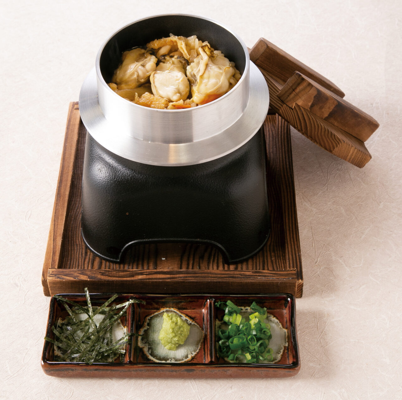 釜めしに適度な大きさの広島県産の牡蠣を使用した炊きたて釜めし 広島県産牡蠣めし(だし汁つき)や、身はやわらかく淡泊な冬の定番魚・あんこうのぶつ切りをサクッとジューシーな唐揚げにしたあんこうの唐揚げなど、冬の絶品グルメを7種類用意されています。