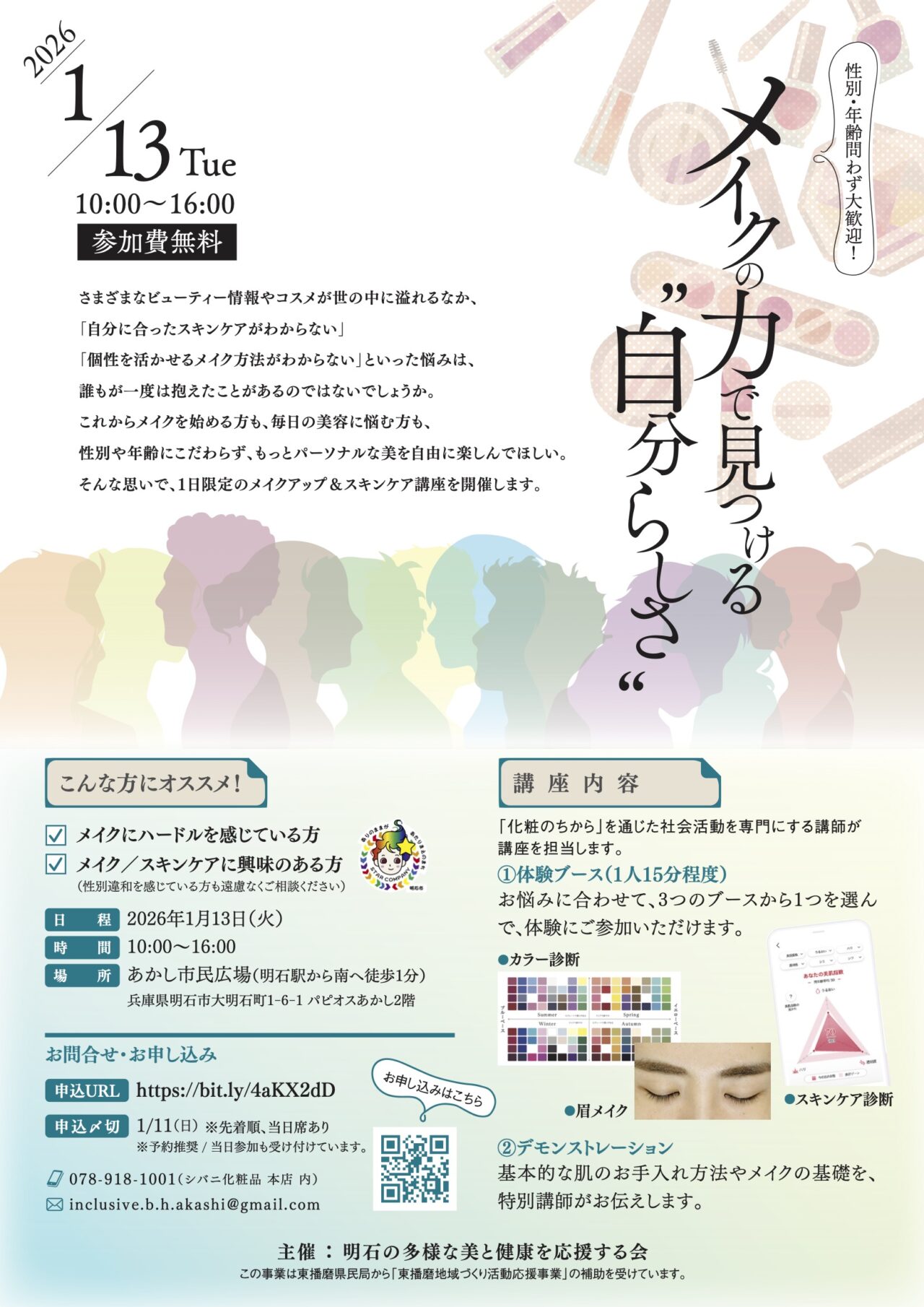 【明石市】あかし市民広場で「メイクの力で見つける”自分らしさ”」が開催されます。(参加費無料)